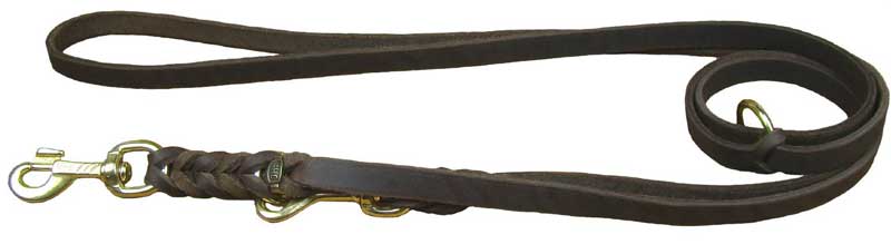 Lederleine geflochten 12mm 240cm braun 2-fach verstellbar Chrom