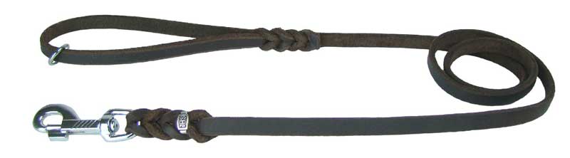Lederleine geflochten 8mm 220cm braun m. Schlaufe Chrom