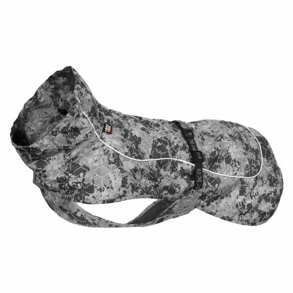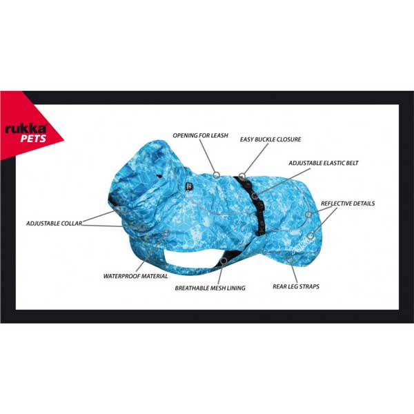 Rukka pets Regenmantel. Frontbereich und Saum sind abgedeckt. Reflektierende Details. Kragen und Taille verstellbar. Wasserdichtes Material. Zusätzlicher abnehmbarer Röhrenkragen. Komfortables und atmungsaktives Netzfutter. Eine federleichte und wasserabweisende Regenjacke für Ihren Hund in einem einzigartigen Style, die die Bewegungsfreiheit nicht einschränkt. Der formgerechte vordere Bereich der Regenjacke schützt die wichtigsten Muskelgruppen Ihres Hundes vor Wind und Schnee und erlaubt dem Hund, sich frei zu bewegen und zu spielen. Dank dem einfach zu bedienenden Schnallenverschluss lässt sich die Jacke einfach und schnell anziehen. Elastische Schlaufen an den Hinterbeinen sorgen dafür, dass die Regenjacke zu keinem Zeitpunkt verrutscht, auch nicht bei Aktivitäten mit höherer Intensität. Der Taillenbund ist mit einem verstellbaren und elastischen Gummiband ausgestattet. Ein verstellbarer Kragen und Halsausschnitt bieten zusätzlichen Schutz und verleihen der Jacke den letzten Schliff. Die Jacke wird in einer stilvollen Tasche geliefert, sodass Sie sie jederzeit bequem bei sich tragen können. Die Regenjacke ist mit reflektierenden Paspeln und unserem Logo versehen.