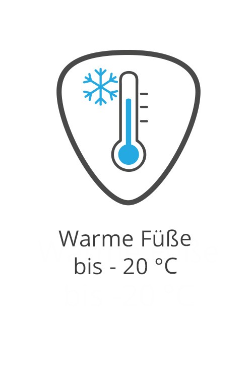 Durch den mehrschichtigen Sohlenaufbau plus Fußbett bleiben Ihre Füße auch mit normalen Socken bis zu einer Temperatur von -20 °C angenehm warm.
