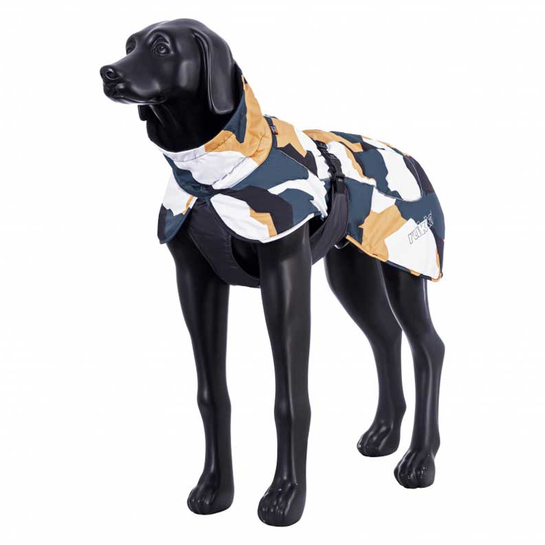 Stormy hält den Hund im Freien warm und trocken. Beim Design dieser Jacke haben die Bedürfnisse aktiver Hunde eine zentrale Rolle gespielt. Bei diesem Half-Cape-Design sind die vorderen Beinöffnungen bis zur Kragennaht offen, so dass Ihr Hund seine Vorderbeine frei bewegen kann, wodurch sie ihm auch über längere Strecken Komfort bietet . Die Jacke ist mit einem warmen Fleece-Futter und einem gut abdeckenden Saum ausgestattet. Dank des Schnellverschlusses mit einer Schnalle lässt sich die Jacke schnell und einfach anziehen. Der verstellbare Halsausschnitt und der verstellbare Kragen verleihen dem Ganzen den letzten Schliff und sorgen für einen perfekten Sitz und einen optimalen Schutz. Auf der Rückseite befindet sich eine abgedeckte Öffnung, über die eine Leine befestigt werden kann. Elastische Schlaufen an den Hinterbeinen sorgen dafür, dass die Jacke bei Aktivitäten mit höherer Intensität nicht verrutscht. Die Jacke ist mit reflektierenden Paspeln und unserem Logo versehen.